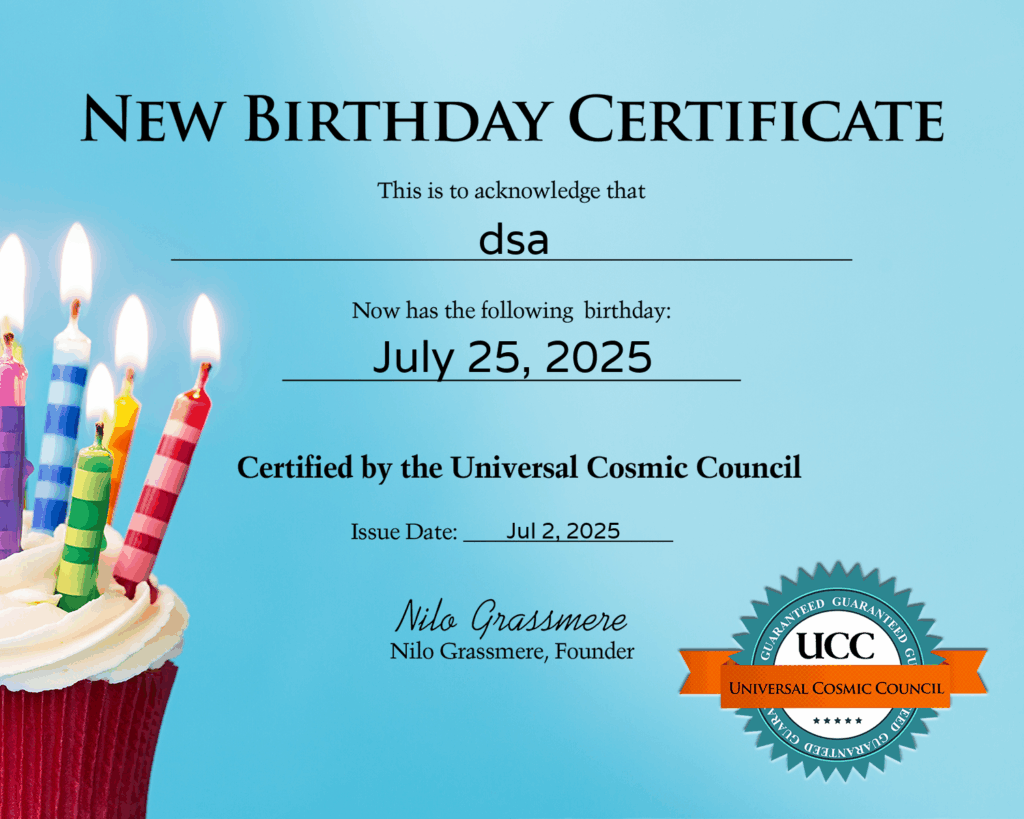 New Birthday Certificate for dsa