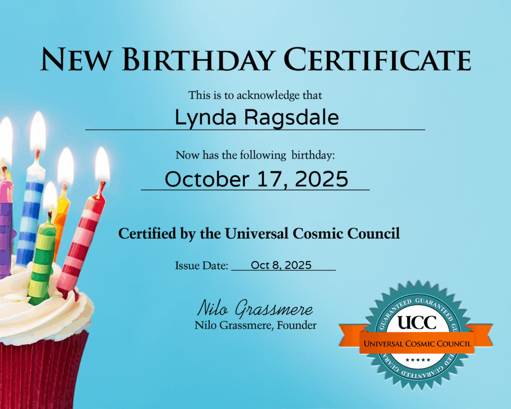 New Birthday Certificate for Lynda Ragsdale